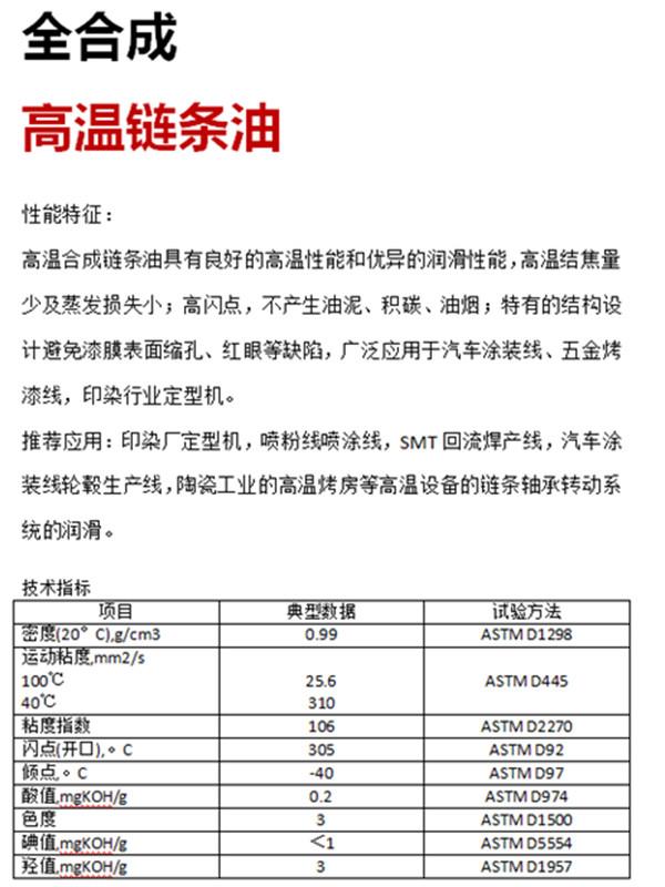 廈門威馬工貿(mào)有限公司位于美麗的花園城市-廈門市同安區(qū),公司專營(yíng)合成高溫油脂系列產(chǎn)品。產(chǎn)品分為:高溫鏈條油、高溫潤(rùn)滑脂、高低溫潤(rùn)滑脂等系列油品。廣泛應(yīng)用于:定型機(jī)、噴涂/噴粉、巖棉等高溫潤(rùn)滑設(shè)備,本品無(wú)煙,無(wú)殘?jiān)瑢儆谌铣筛邷赜拖盗?,可寄樣試用,長(zhǎng)期服務(wù)全國(guó)客戶。